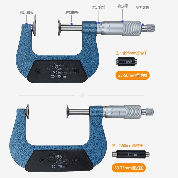 Qinghai Qingqinggear Public Law Line micrometer 0-25 25-50mm0 01 disc head paper Measuring micrometer