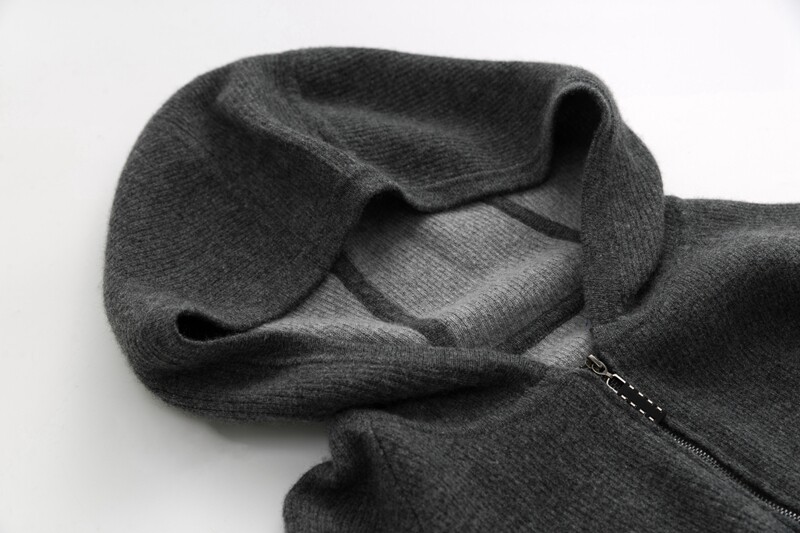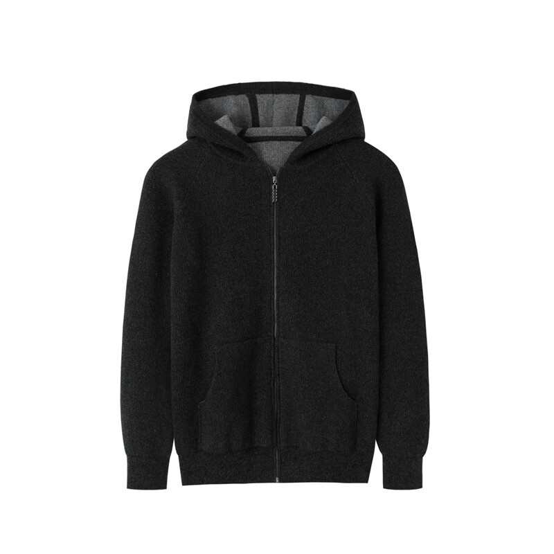 Fuxianglin from Ordos City Hooded Collar Zipper Four Flat Idling Men's Thickened Cardigan 100% Cashmere