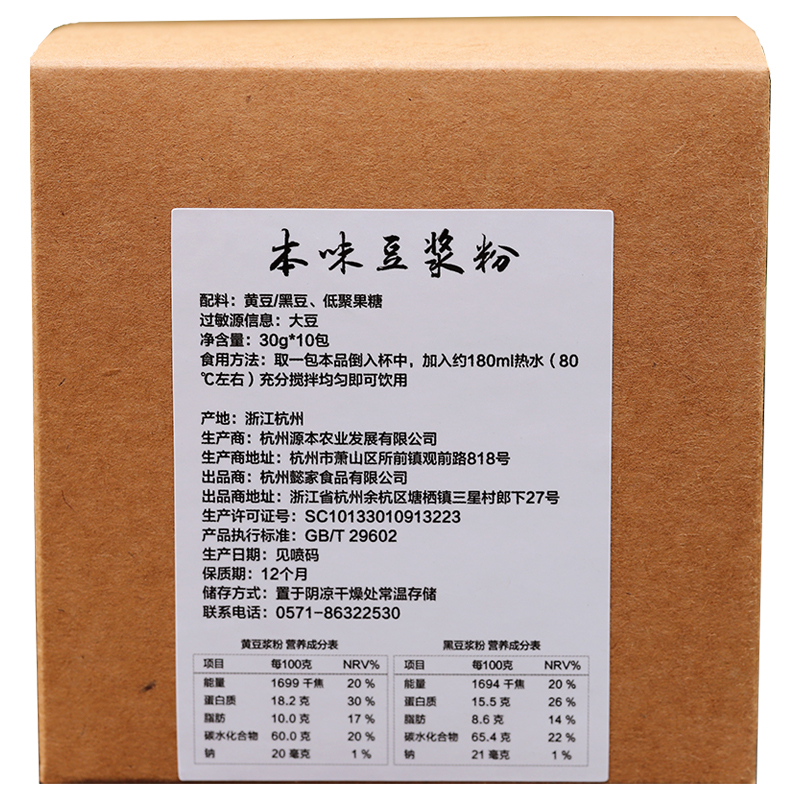 Yijia Ben-flavored soy milk powder 10 packs 300g yellow and black bean powder natural micro-sugar nutritious breakfast instant ready-to-eat brewed drink