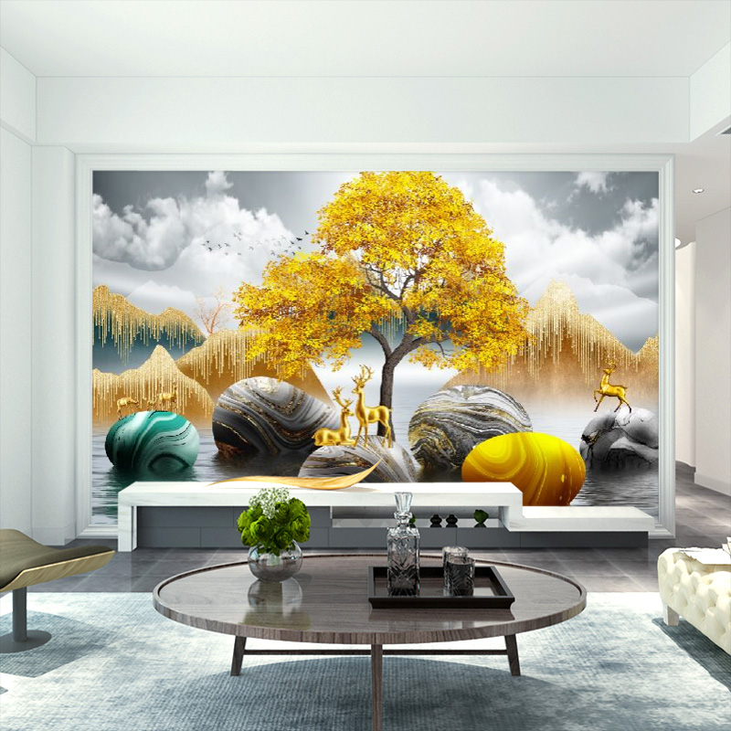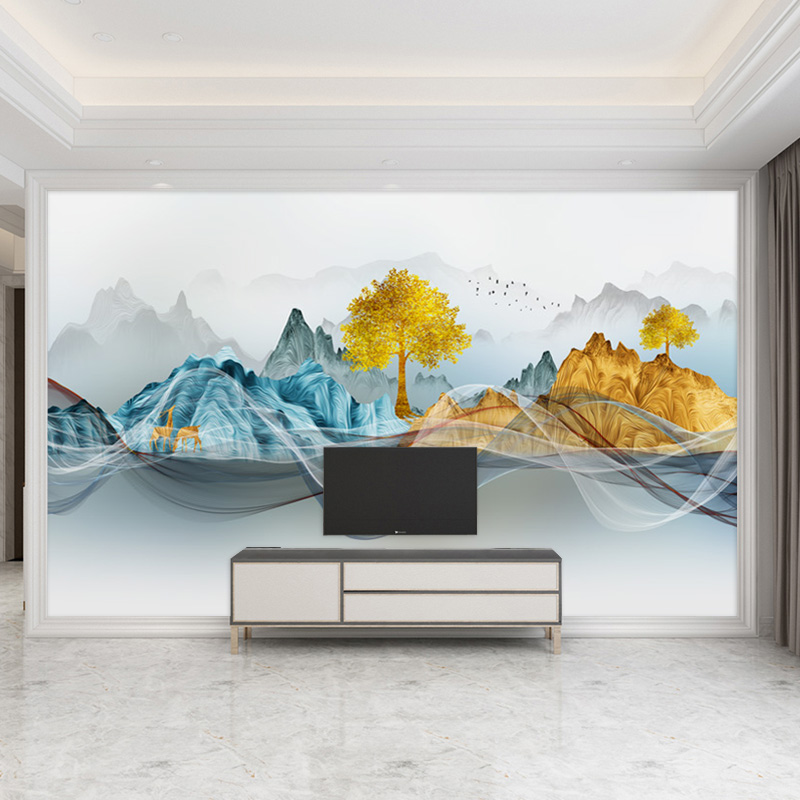 New Chinese landscape abstract bamboo wood fiber integrated wall panel TV background wall sofa Nordic elk film and television wall panel