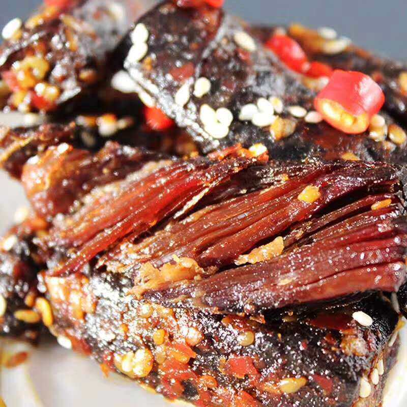 The beef jerky is dry.