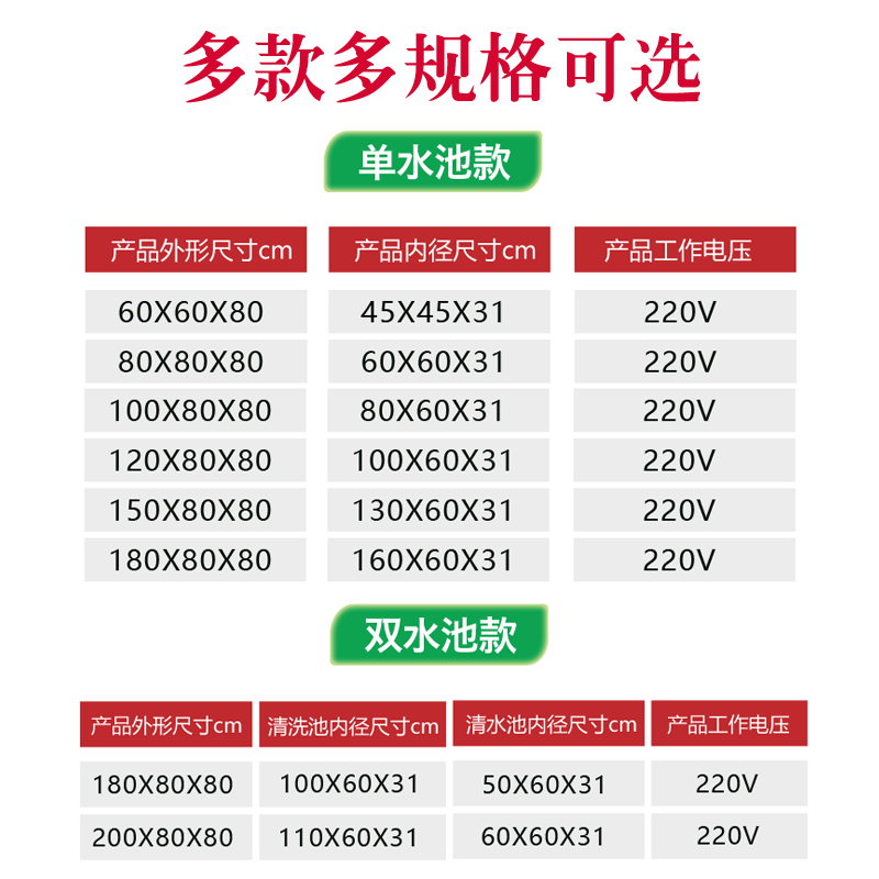 Type 60 80 80 100 120 120 150 150 Type 180 Double pool