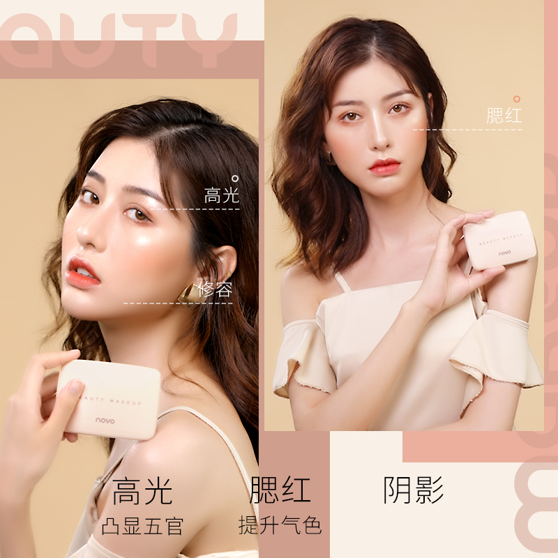 NOVO two-color high-gloss repairing plate powder blush all-in-one shadow repairing glitter face brightening repairing powder
