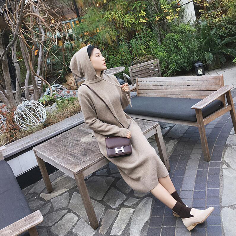 Long version thick cotton T skirt woman autumn over knee knit foreign dress Winter thickened slapped undercoat dress with large dress inside a dress
