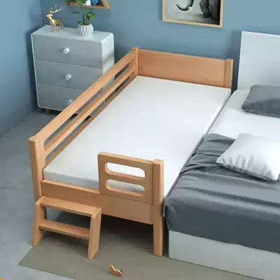 Solid wood children's bed splicing bed Baby bed splicing large bed widened bed Beech single boy baby bed side bed