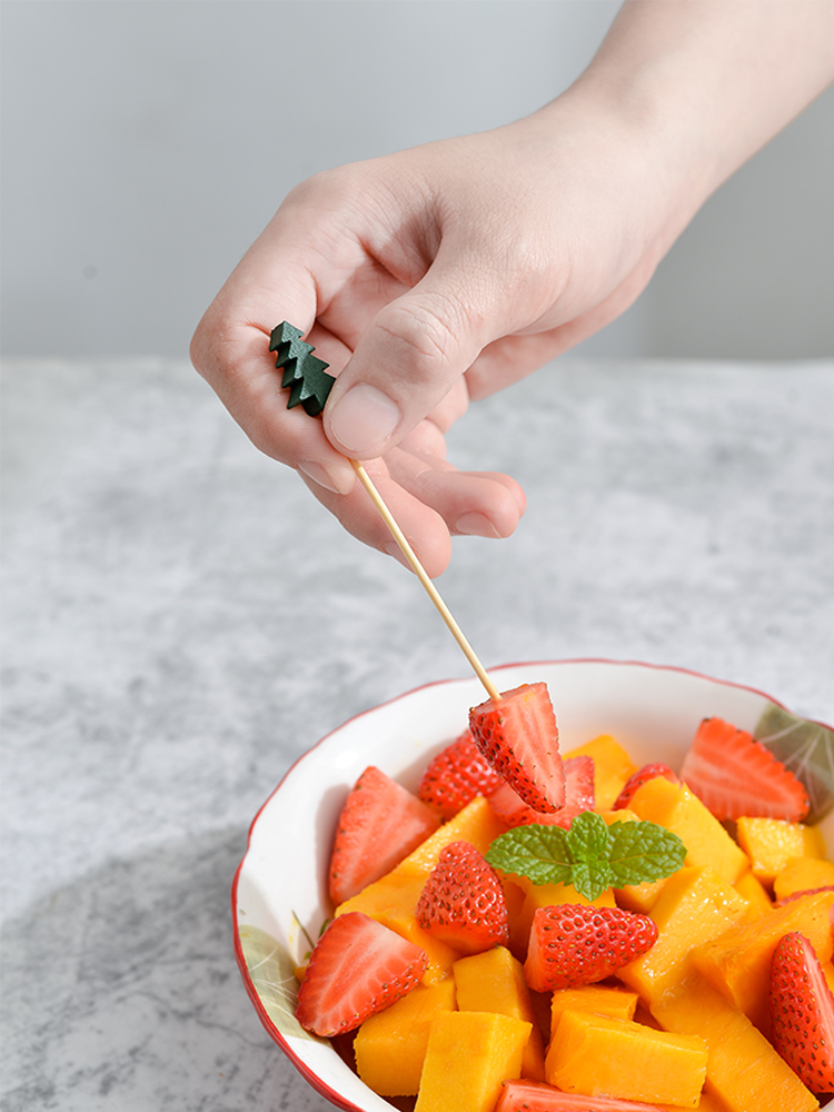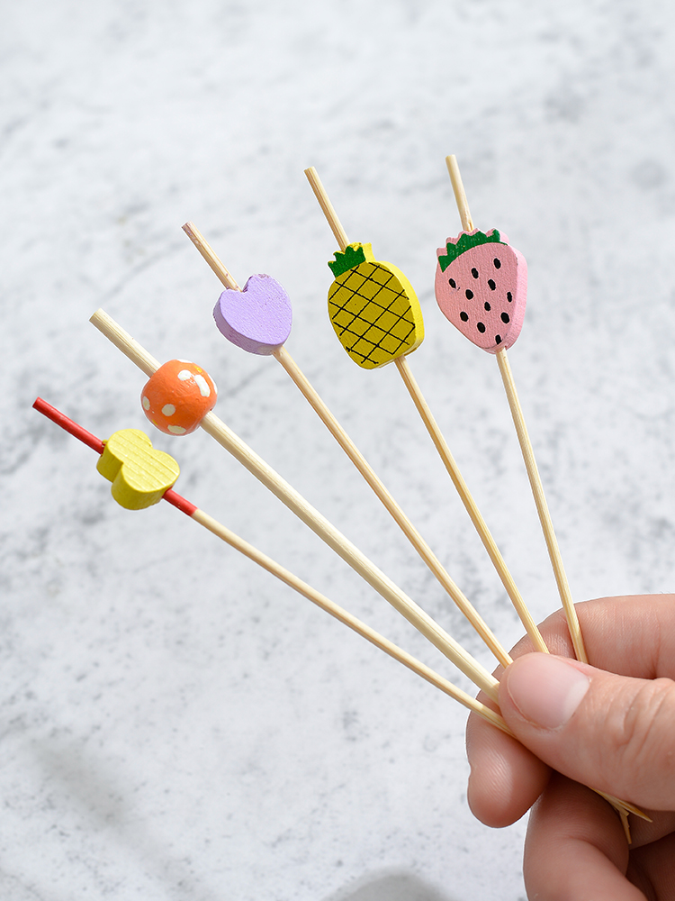 Disposable knotted bamboo stick fruit sign art sign flower knot string finger ring scissors sign KTV cocktail hamburger sign