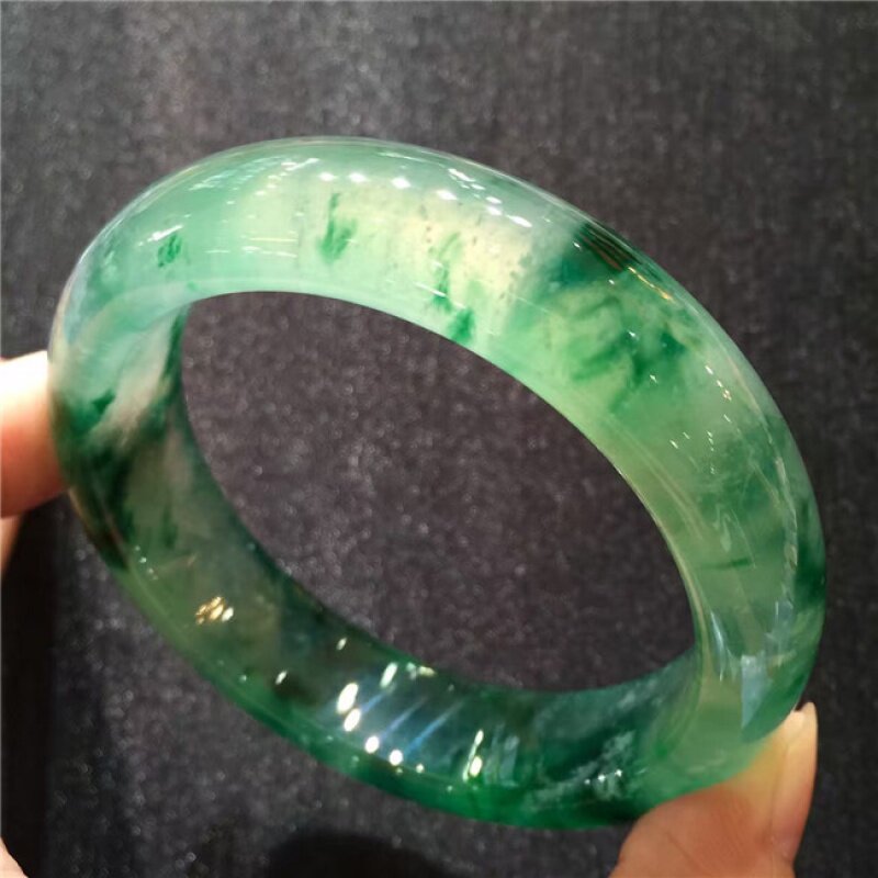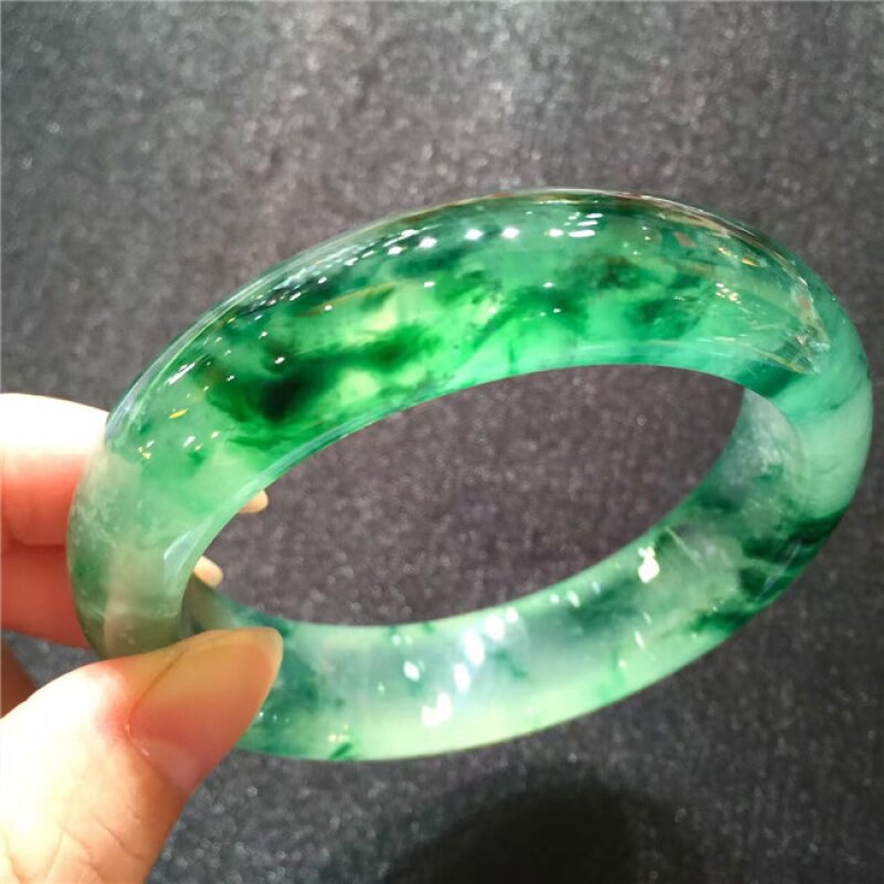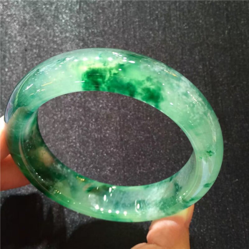Longyu Culture Old Pit Burmese Ice Seed Floating Emerald Floating Green Flower Positive Ring Jade Bracelet Woman's Permeable Jade Bracelet