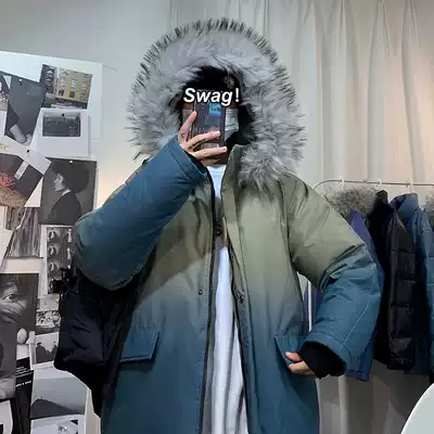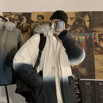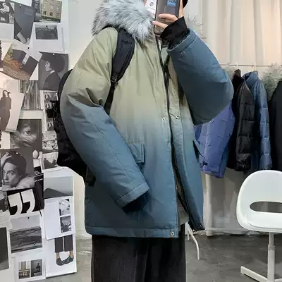 Down Jacket men's 2020 new winter gradient color Korean version of youth student down jacket men's thickened jacket trend