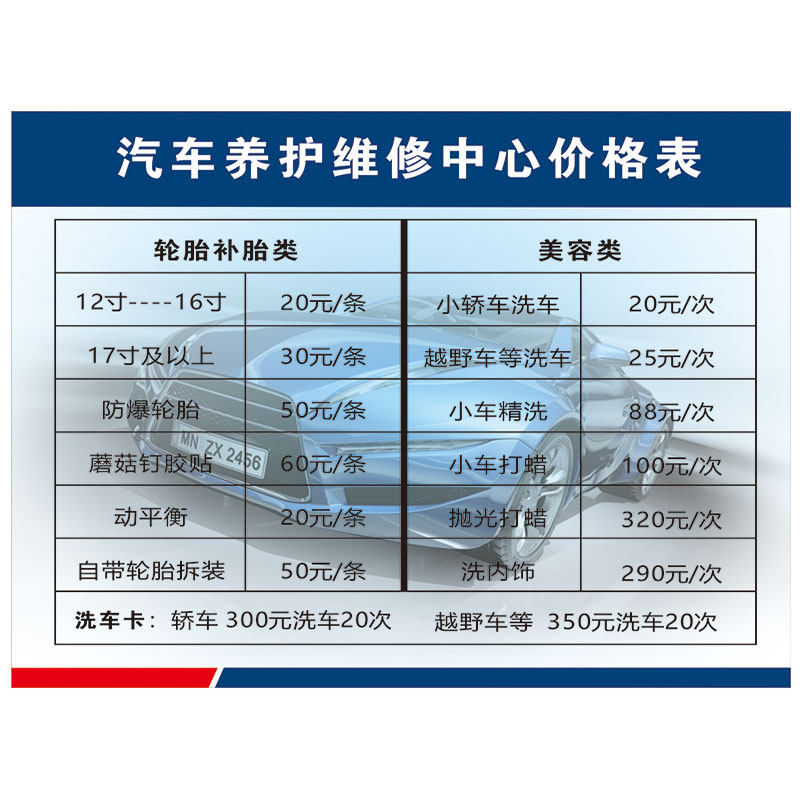 Car maintenance and repair center price list large poster to make car wash shop vehicle car wash beauty price list sticker