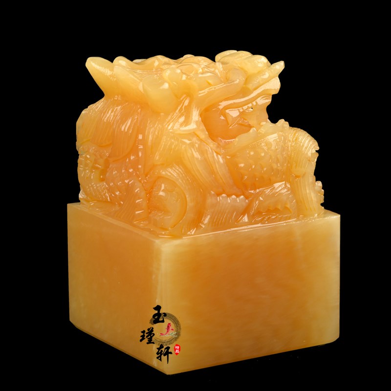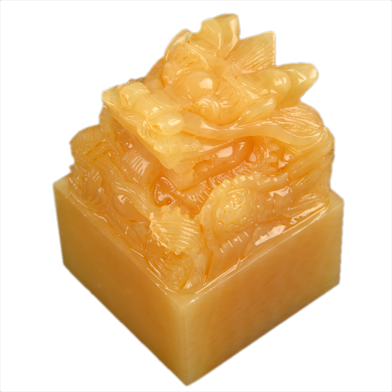 Natural rice yellow jade Kowloon seal Seal Hem of Qianlong Imitation Ancient Office Craft Gifts Swing Accessories Business Gifts