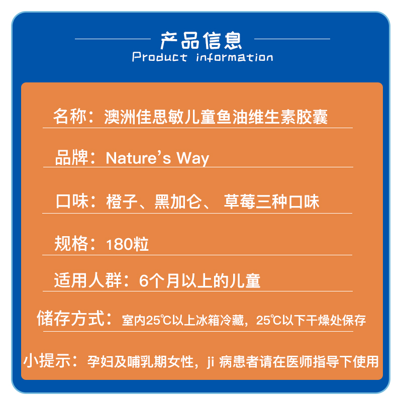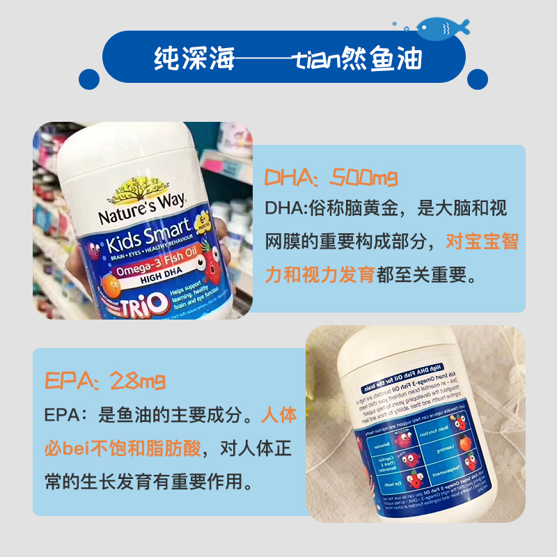 Australian natures way Jiasmin children's fish oil tri-color vitamin DHA capsules puzzle eye care 180 capsules