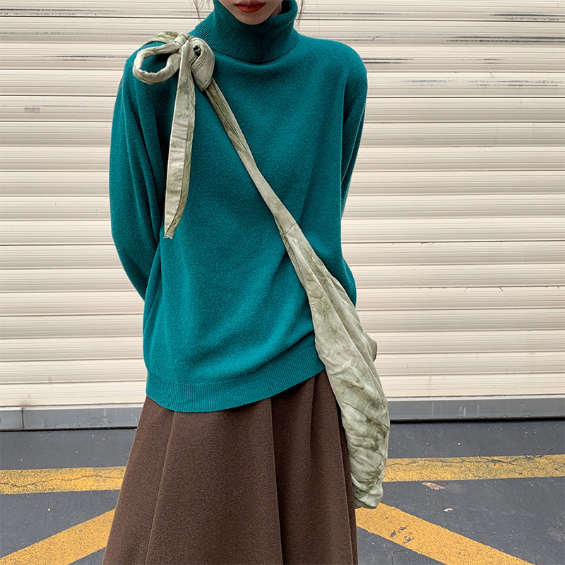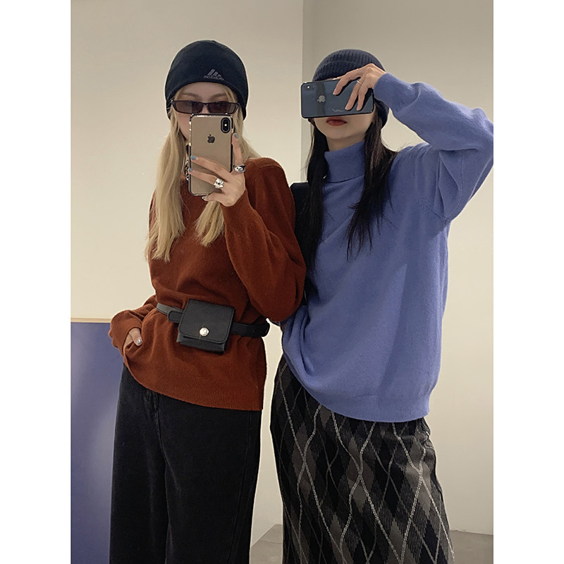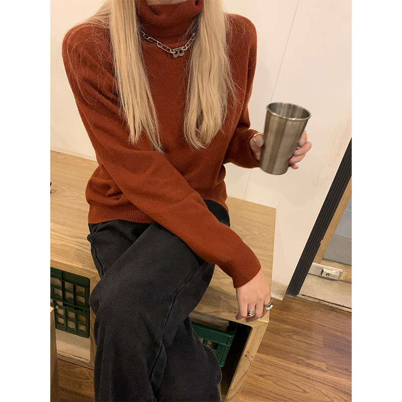 Red Pavilion turtleneck sweater women's loose and lazy 2022 new autumn and winter fashion Western style pullover casual knitted sweater