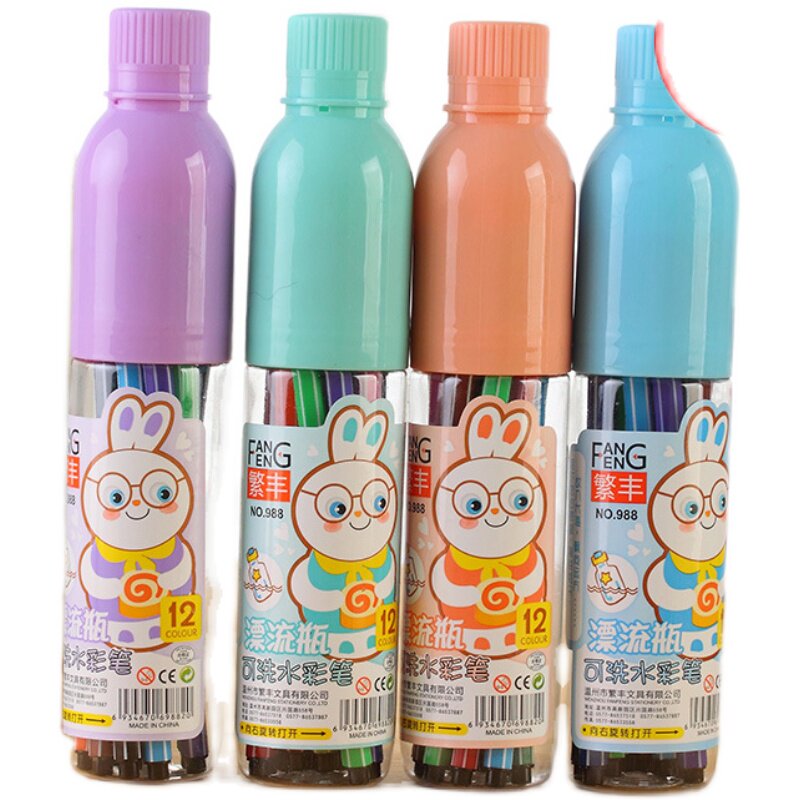 Washable graffiti color pen drift bottle watercolor pen elementary school students reward small gift brush baby 12 cartoon brush