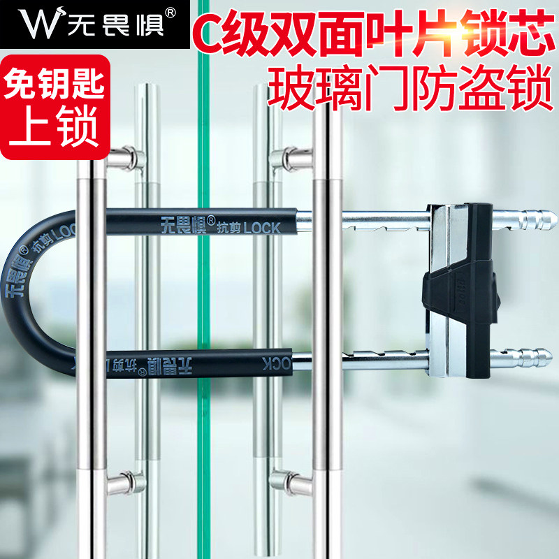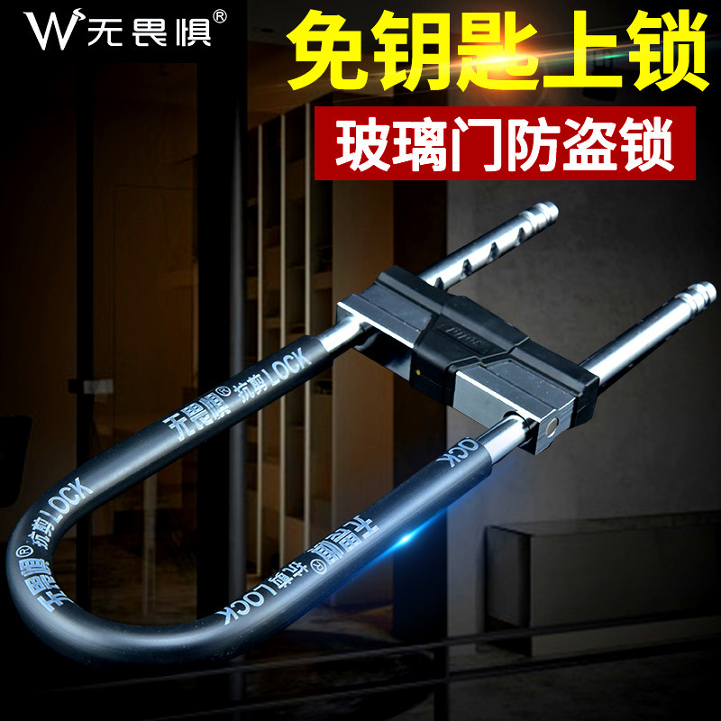 Fearless anti-hydraulic cut glass door lock U-lock double door Corporate store insert lock ring U shaped lengthened burglar-proof lock
