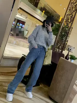 Beautiful super thin elegant decoration beautiful crotch jeans autumn and winter 2021 New Women wide leg pants