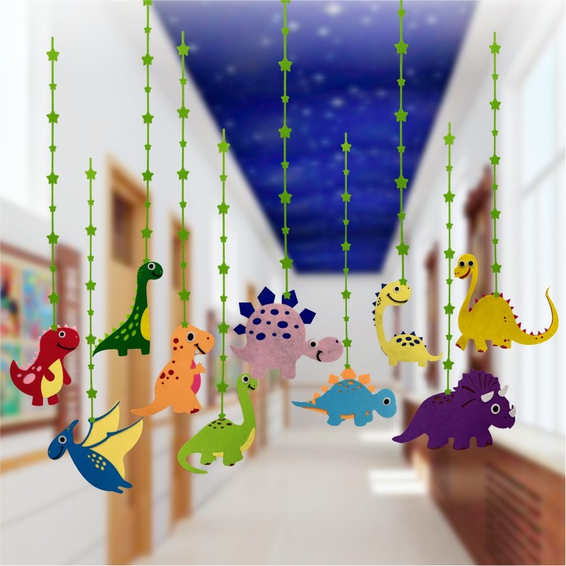 Kindergarten dinosaur theme ring creation ceiling decoration classroom corridor layout corridor hanging decoration playground aerial charm