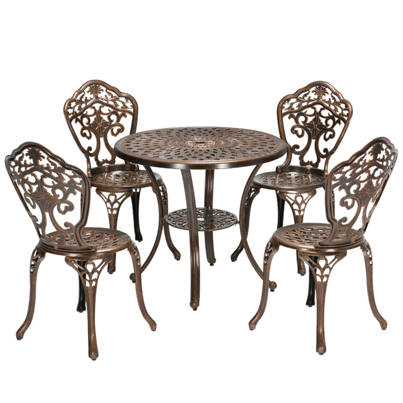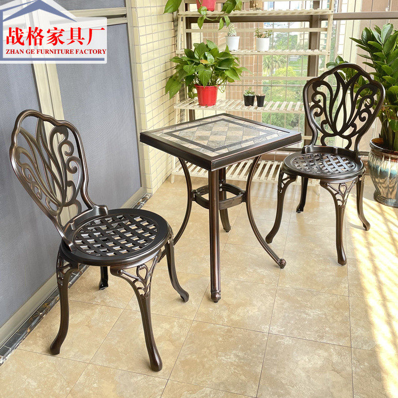 Balcony tea table and chairs Composition Three sets of outdoor cast aluminium Courtyard Casual Terrace Eurostyle Light Lavish Table Two Chairs Mesh Red