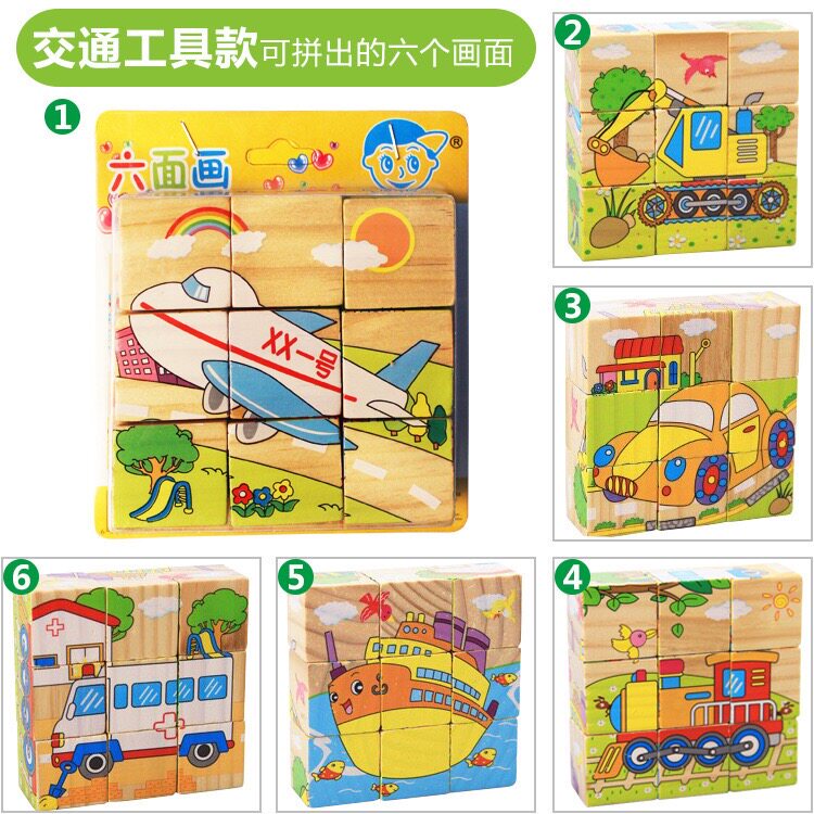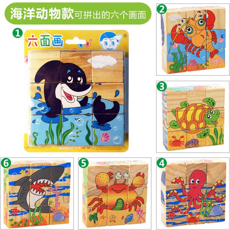 Wooden Six-sided Picture Puzzle Three-dimensional Large Block Children Puzzle Marine Fauna Early Teach Kindergarten Baby Toys-Taobao