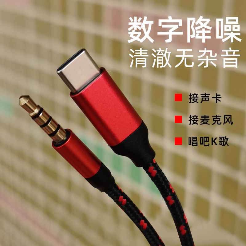 3-5mm 4-section turn type-c digital audio line live sound card sing, little giant egg microphone to apply Huawei
