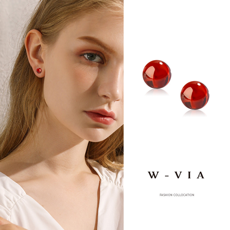 999 sterling silver red garnet earrings femininity small earrings 2022 new trendy red sweet earrings