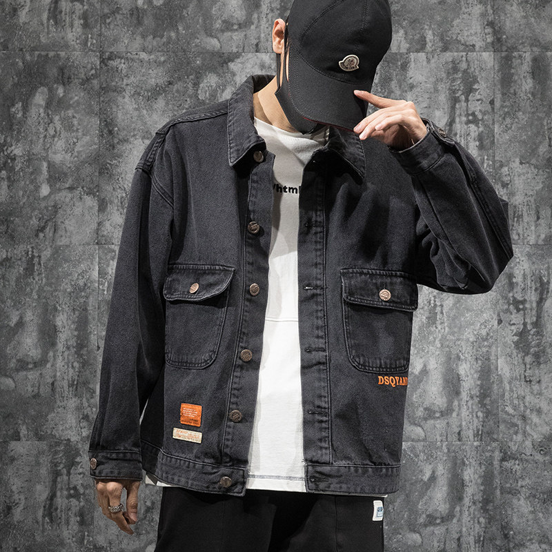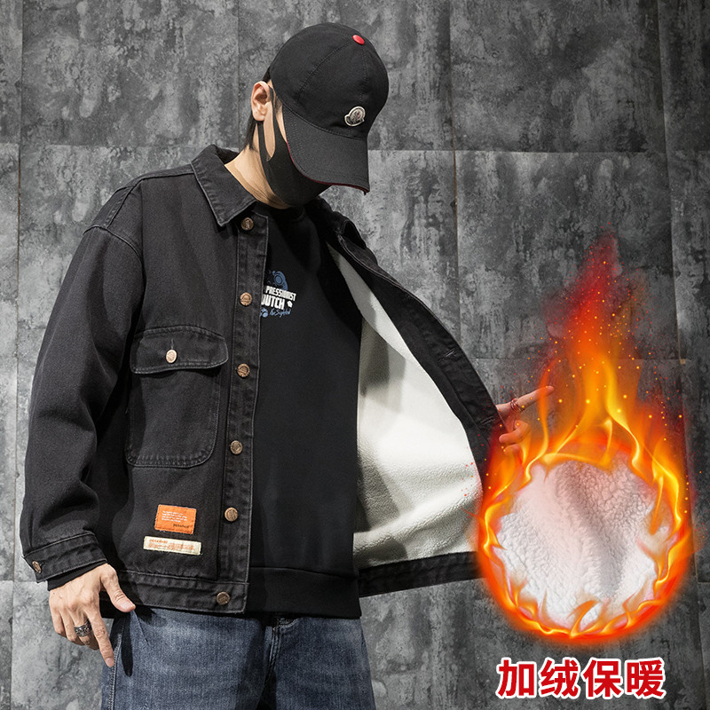 Tide brand it neith BIAS black denim jacket men's autumn and winter plus velvet thickened large size versatile casual jacket