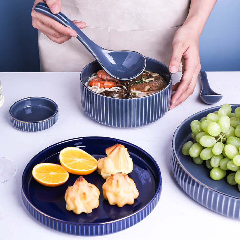 Nordic minimalist light extravagant creative home ceramic dishes Dish Suit Plate Combined Soup Bowl Shallow Pan Deep Pan Fish Pan Rice Bowl