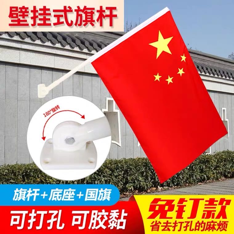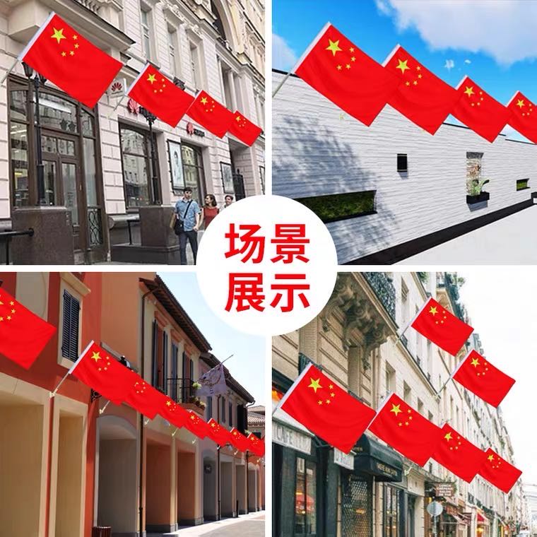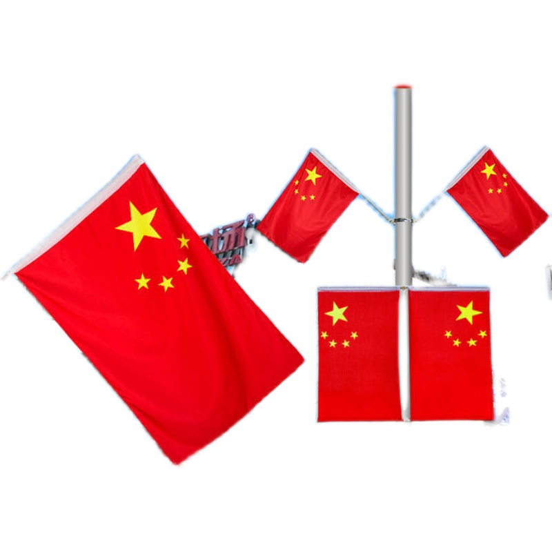 National Flag Wall-mounted Flag Five Stars Red Chess and Flag Streetlights Decorated Flag Street Color Flags Sloped Advertising Banner