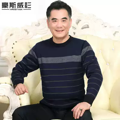 Dad spring and autumn round neck knitwear middle-aged men plus velvet thick sweater middle-aged and elderly winter warm bottoming coat
