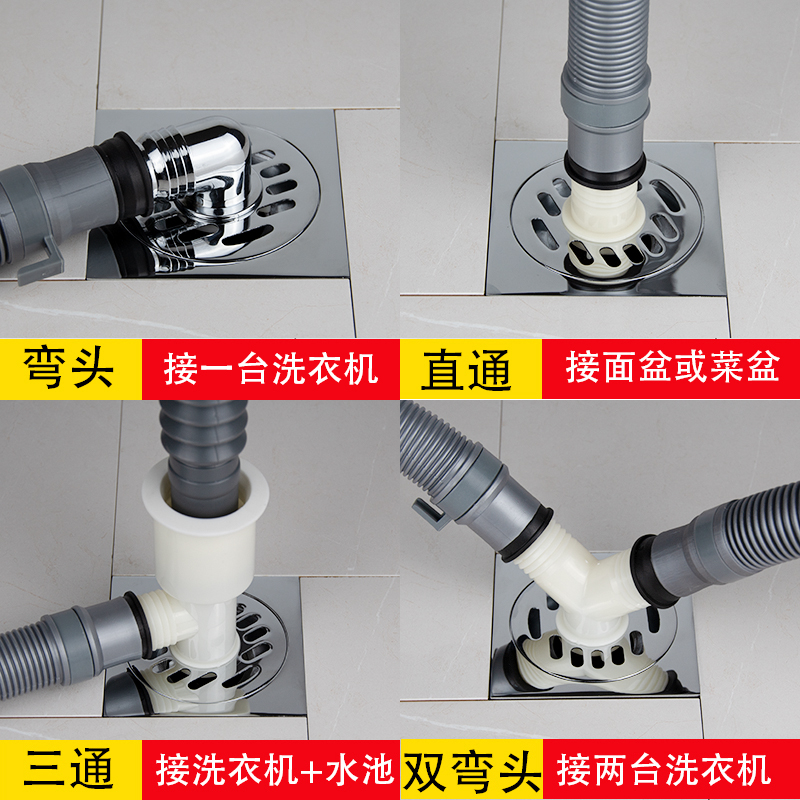 Washing machine water outlet pipe with floor drain lid special joint dual-use deodorizer drain pipe anti-spill water sewer tee-Taobao
