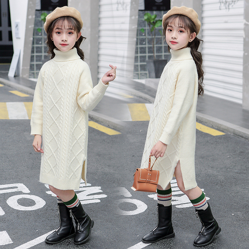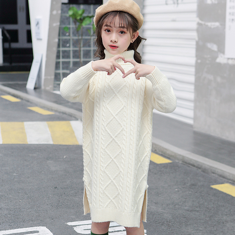 Girls big red sweater turtleneck 10 years old 12 middle-aged girls autumn and winter wear 5 children's thickened long version knitted sweater