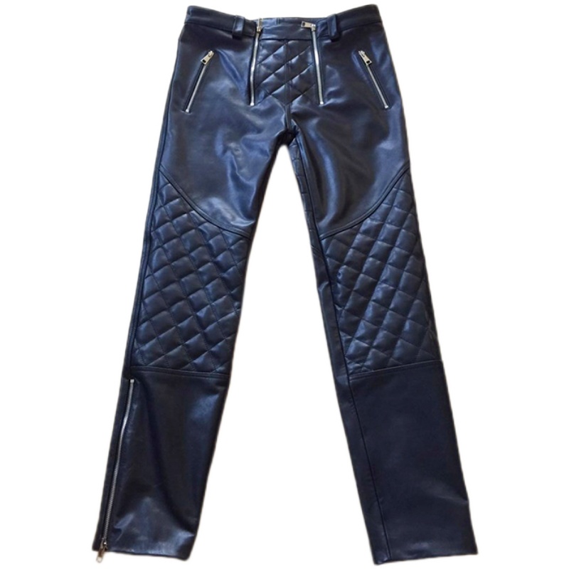 High end set for upscale Napa calf leather double pull chain sexy personality genuine leather pants leather control warm leather pants male tide