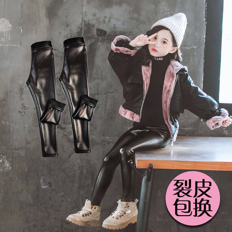 Girls' leather pants plus velvet thick winter 2022 new children's big children's underwear one-piece plus velvet pants outer wear foreign style