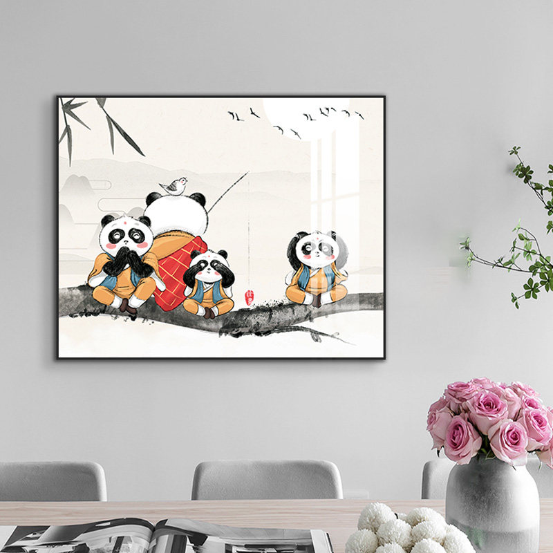 Electric meter box decorative painting free punch living room distribution box hanging painting modern minimalist restaurant wall abstract panda mural