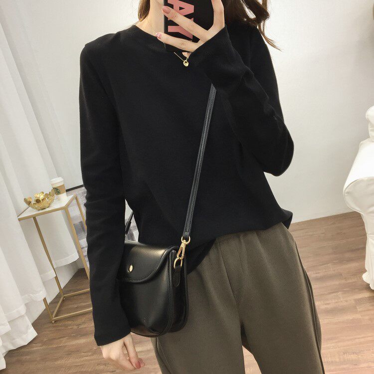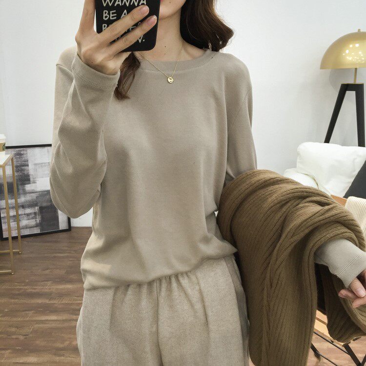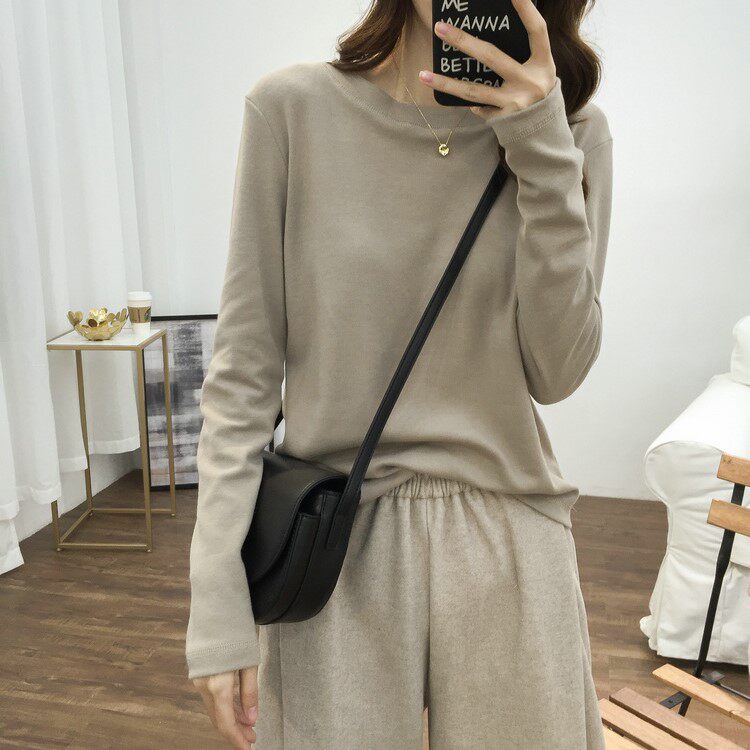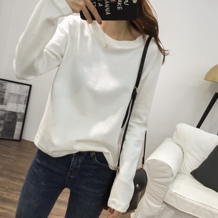 2021 Spring Autumn New Inner Hitch White Undershirt Woman Loose 100 Hitch Pure Cotton Mill Wool Thickened Long Sleeve T-Shirt Jacket