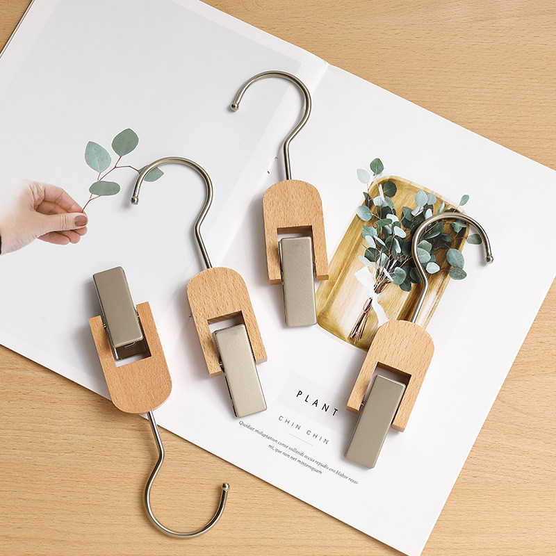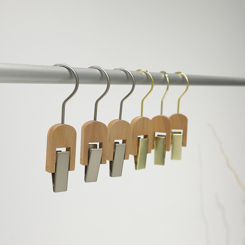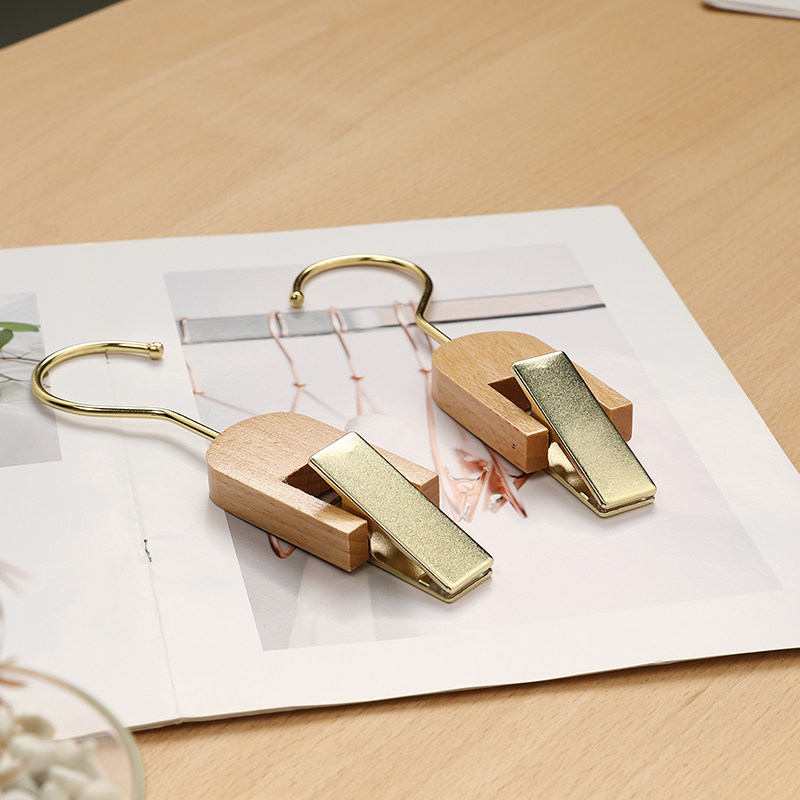 Glass Pavilion Clothing Store Solid Wood Hanger Single Clip Multifunctional Metal Jacket Jacket Clip Pants Rack Log Traceless Non-slip Clothes Hanging