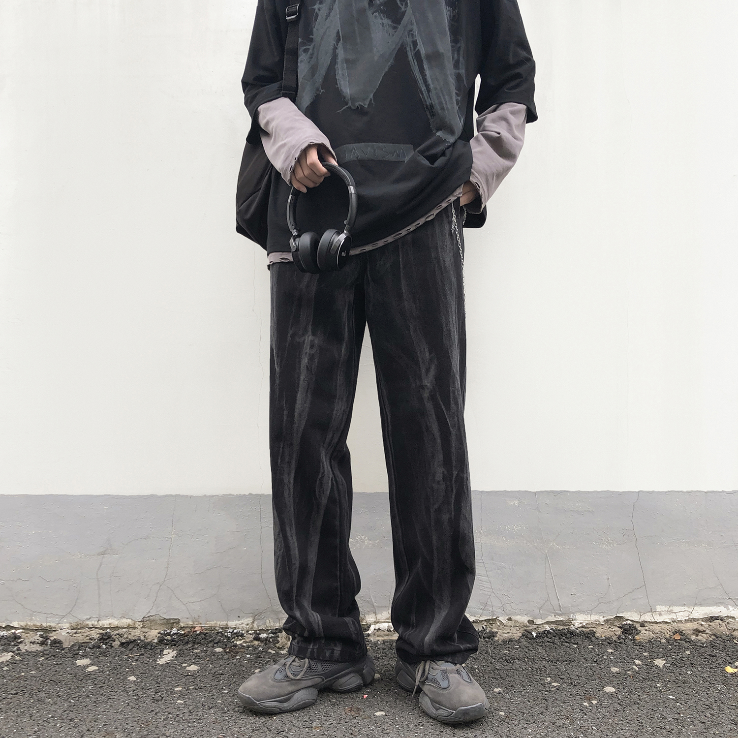 Net Red Jeans Male Tide Card Easy Pendant with wide leg High Street Long pants Hip Hip Hop Pants Trendy Spring Spring