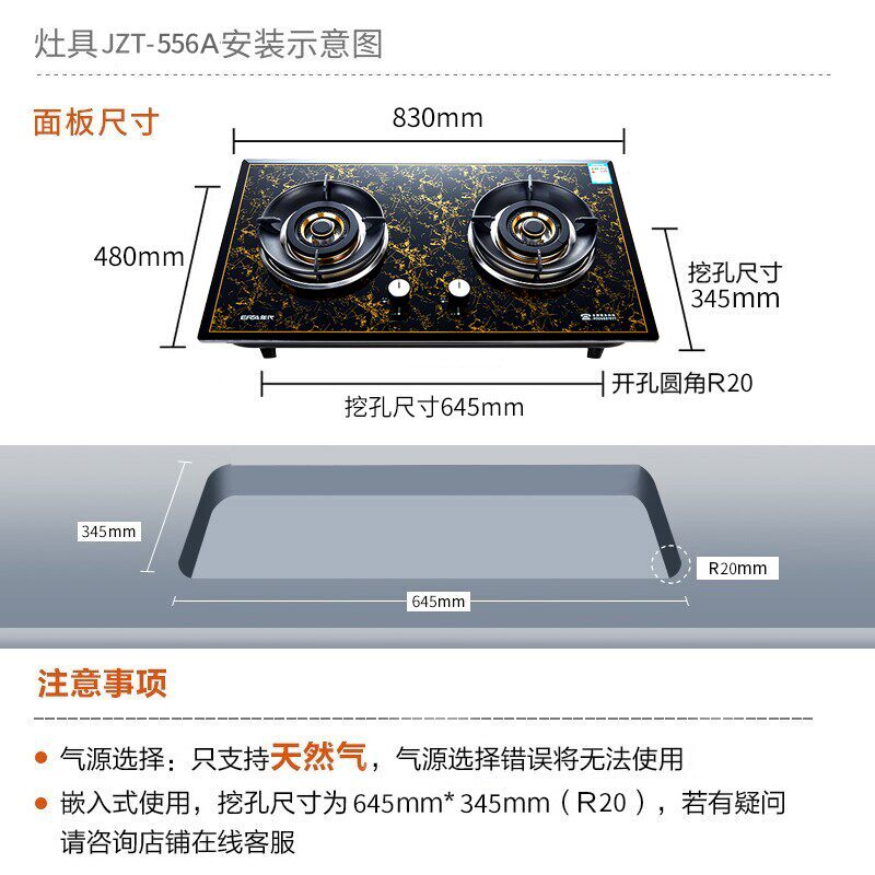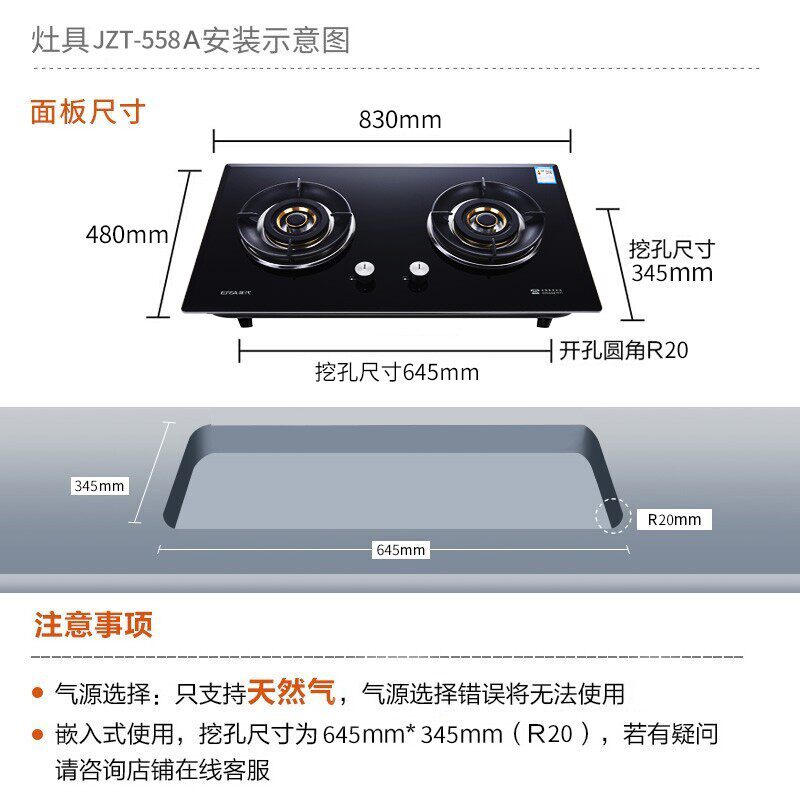 Age gas stove Home Gas upper wind explosion-proof glass panels Embedded gas stove JZT555A
