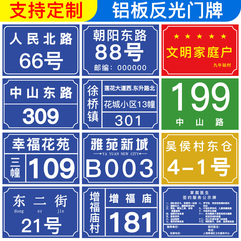 Custom door number plate Number of home units Apartment Building Number Plates Booking for residential creative signs Building signs Building logo Blue Community street building Number of dormitory Residence Villa Hotels