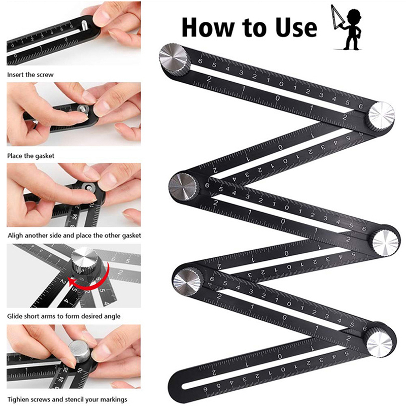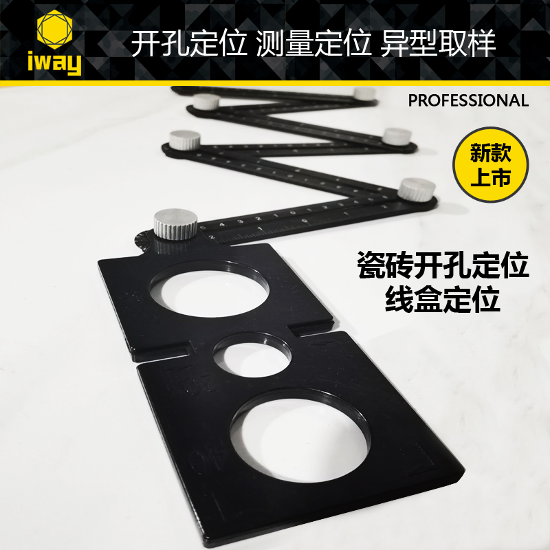 Ai Wei six fold ruler multi-fold joint ruler punching multi-function folding ruler tile opening ruler opening positioner universal ruler