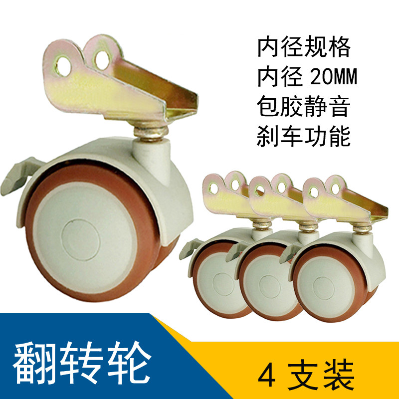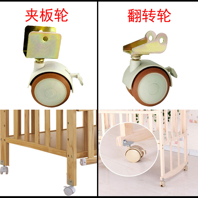 Rubber-covered flip wheel solid wood crib silent brake caster cradle cradle universal wheel universal P-type good wheel