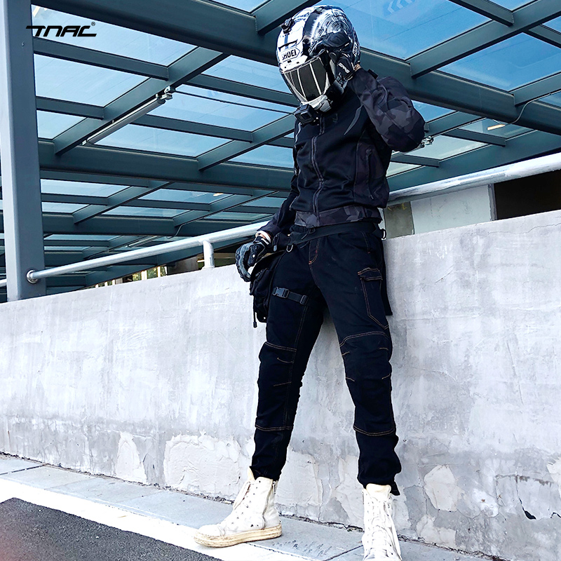 TNAC Tuochi motorcycle motorcycle riding pants Denim men's casual drawstring foot protection slim tooling four seasons racing pants