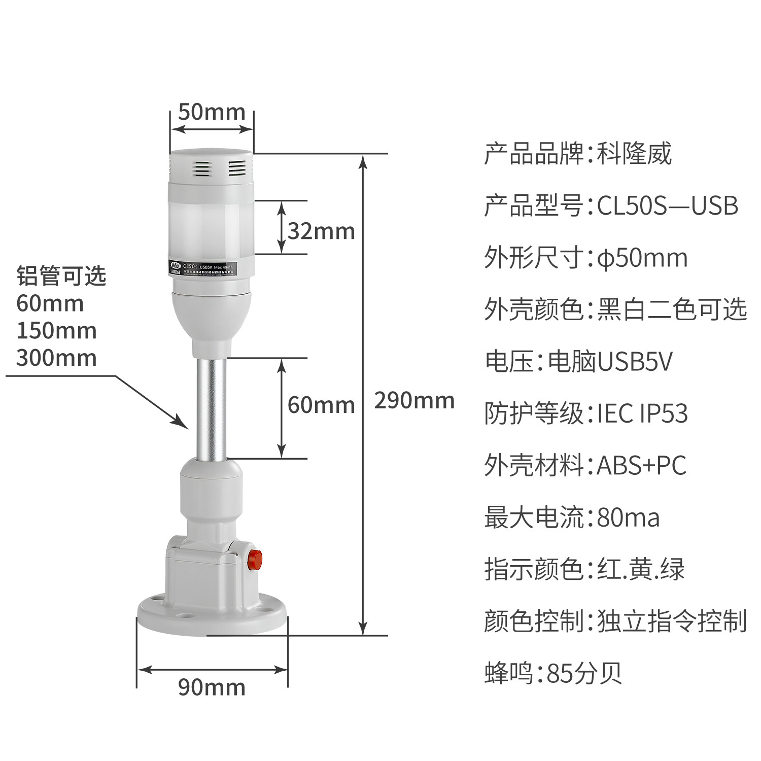Kelongwei USB three-color lamp computer programming control 485Modbus rtu protocol 232 serial port ERP signal lamp