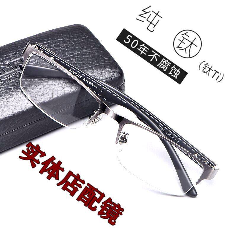 Anti-Blue Light Myopia Glasses Men Pure Titanium Ultra Light Radiation Resistant Anti Fatigue With Degree Half Frame Business Mirror Frame Flat Mirror