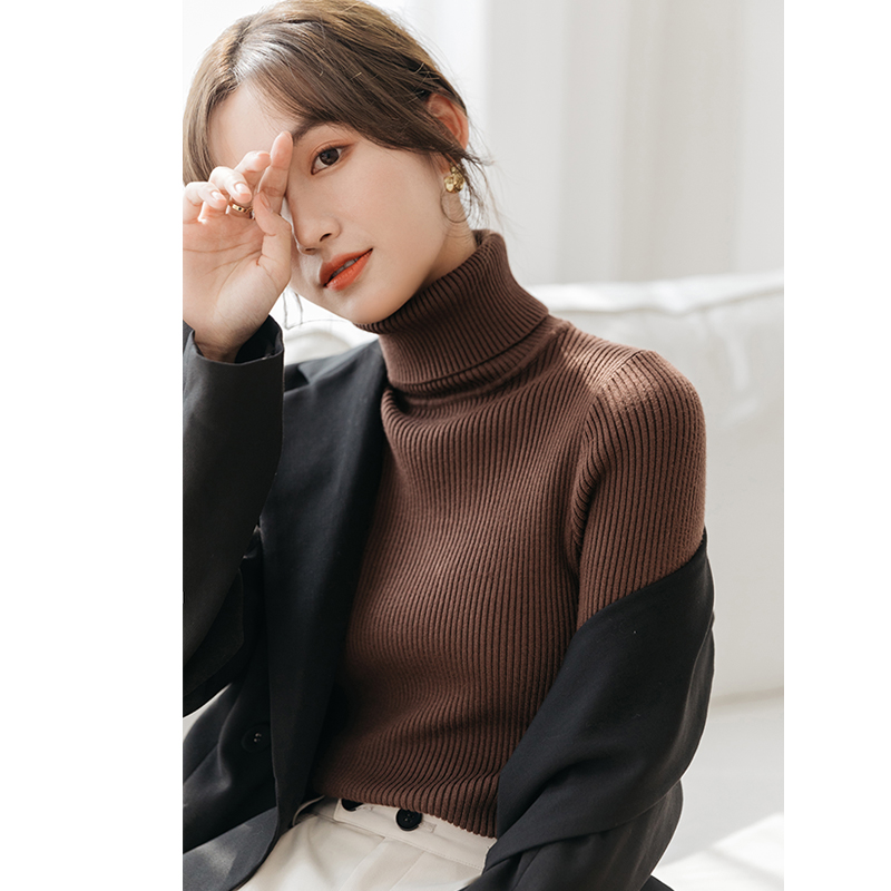 Turtleneck knitwear women's fall/winter 2021 long-sleeved slim fit thickened versatile leggings top black and white undershirt sweater
