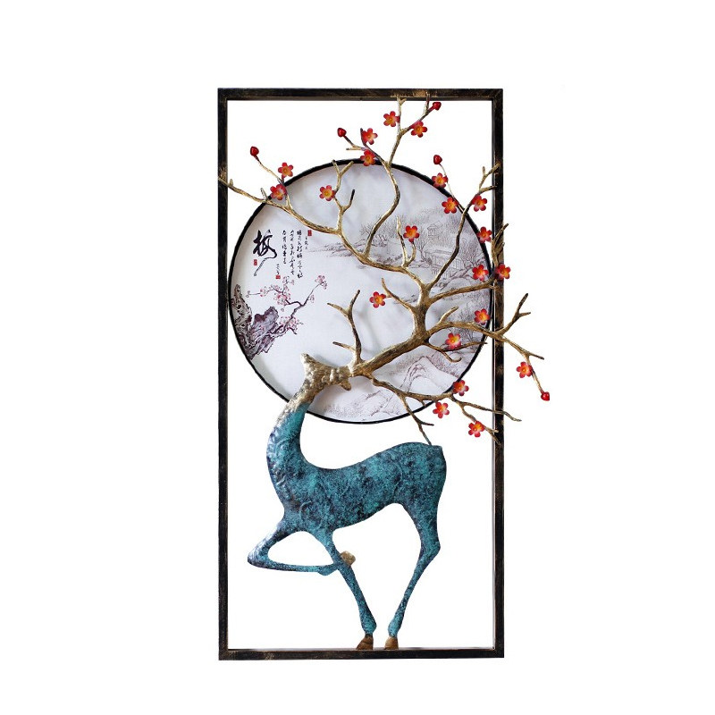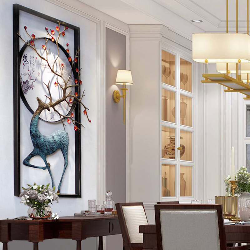 Maple Land Romance New Chinese Genguan Plum Blossom Deer Decoration Living Room Wall Light Extravagant Wall-mounted Wall Creative Hanging Decoration Solid
