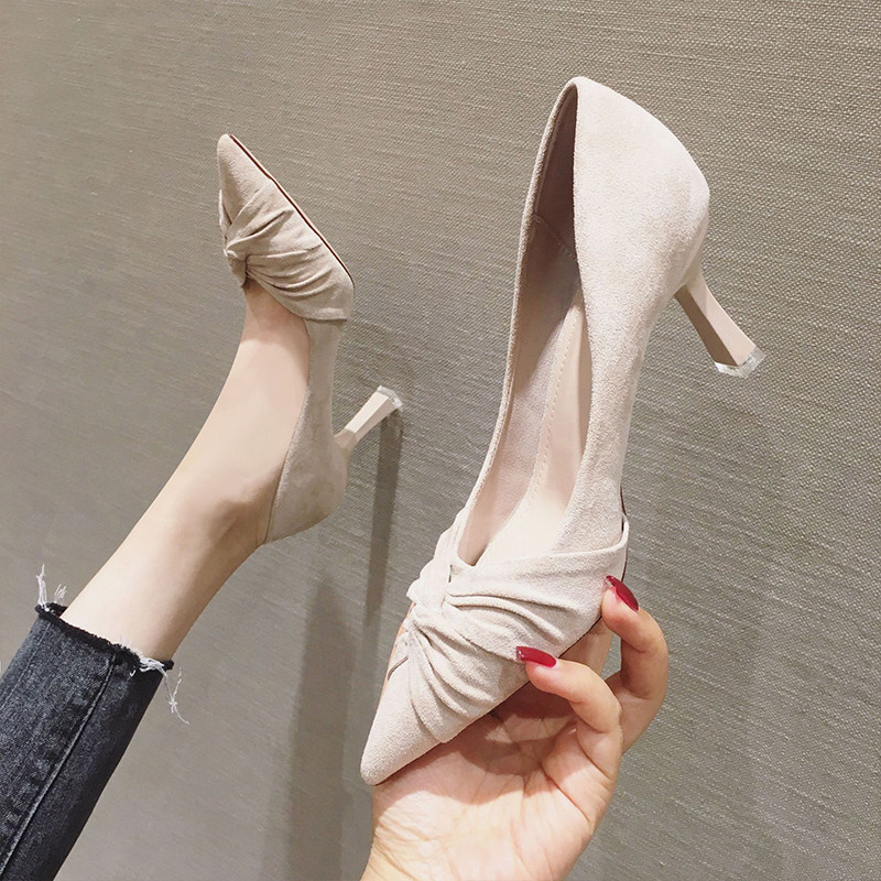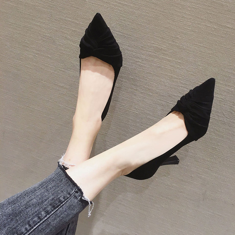 A D Hepburn French pointed heels ~2023 new comfortable suede shallow mouth and fine heel shoes