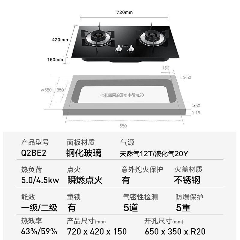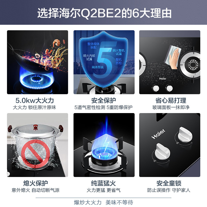Haier Q2BE2 gas stove gas stove double-mouth gas stove Home embedded gas liquid gas hearth type stove