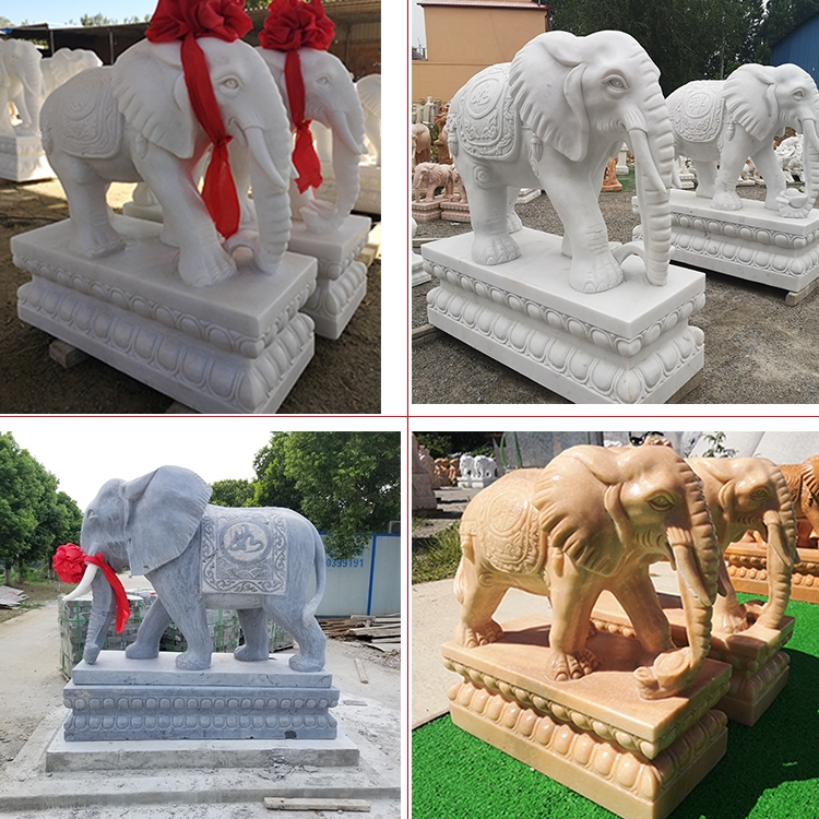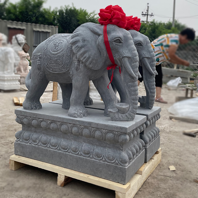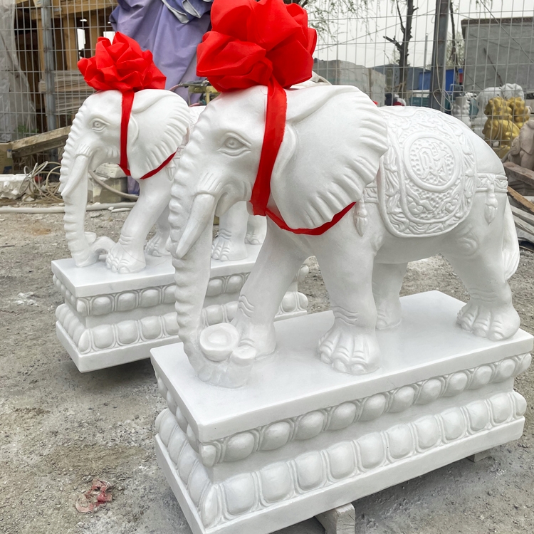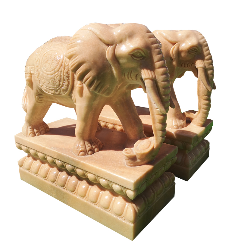 Stone Carving Elephant Pair of Late Xia Red Confessions Small Elephant Animals Feng Shui Han White Jade Elephant Town House Doorway Hem