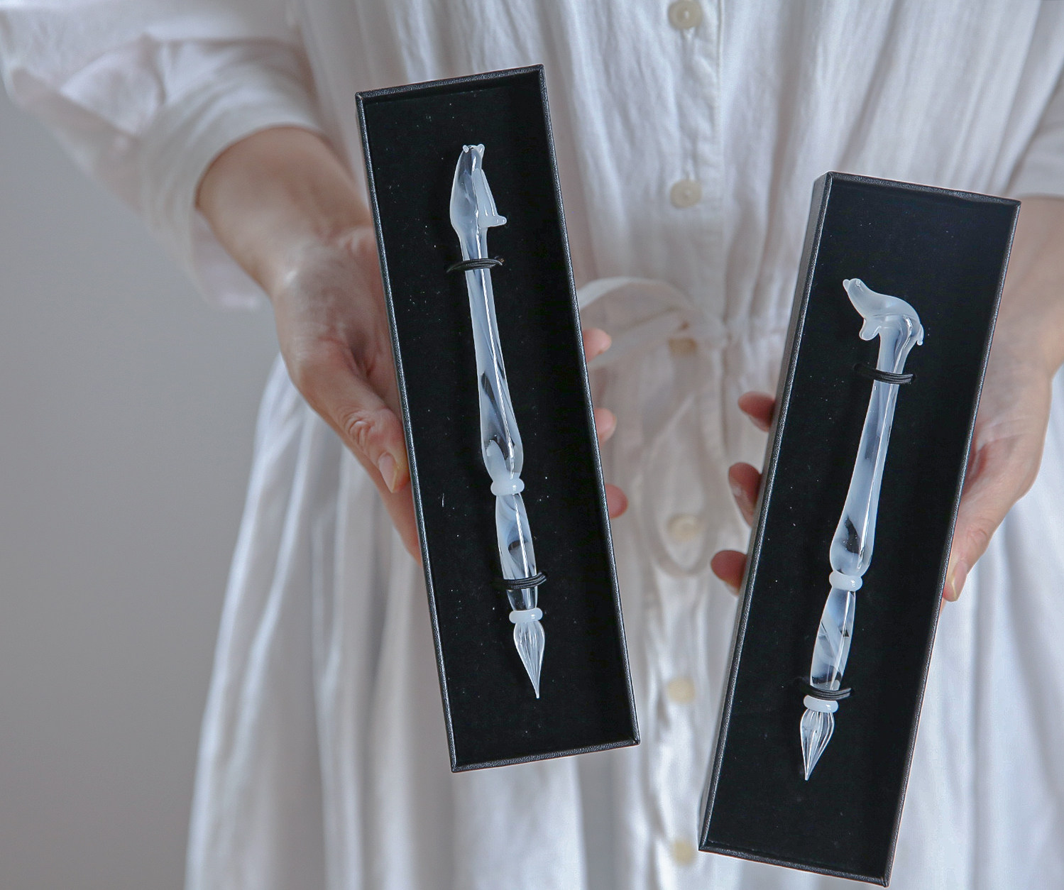 Polar Bear Series Ingenuity Handmade Polar Bear Glass Ink Pen Ballpoint Pen Glass Ornament Gift Box