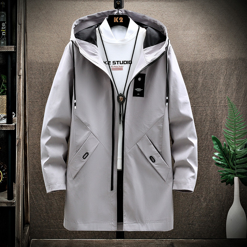 Autumn men's windbreaker medium and long version of the Korean version of the trend autumn and winter jacket jacket velvet thickened casual men's clothes